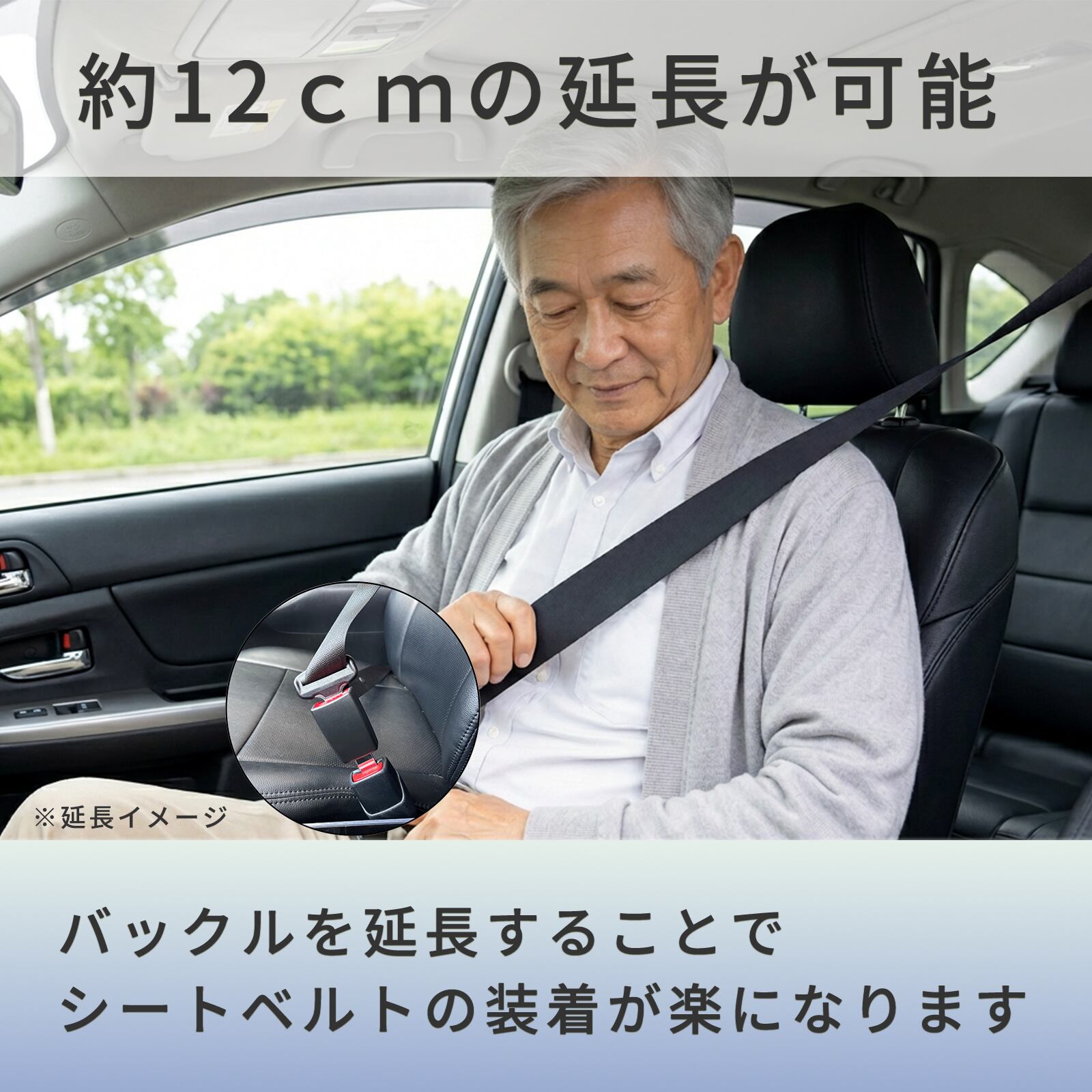 バックルが延長されるため、シートベルトの装着が楽になります。